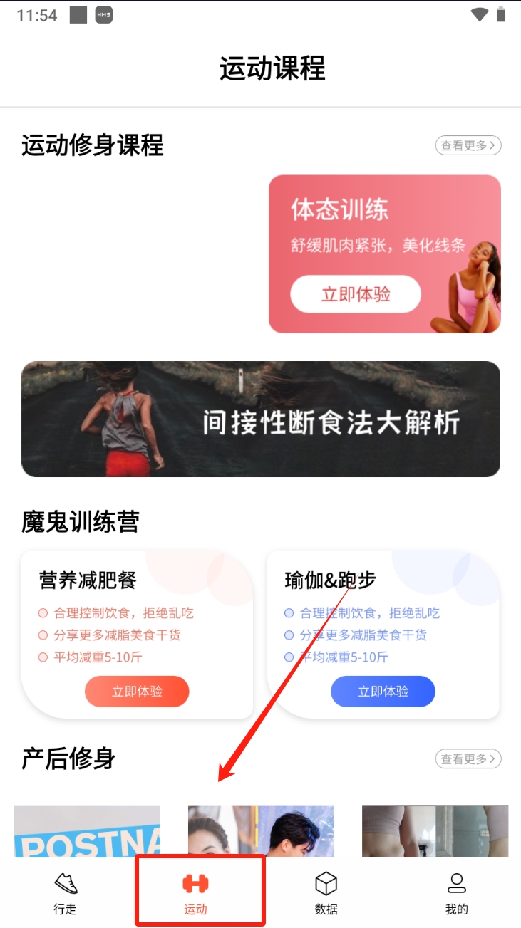 2、点击运动,选择并参与各种运动课程,提升健康水平。