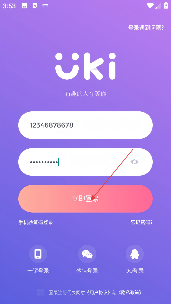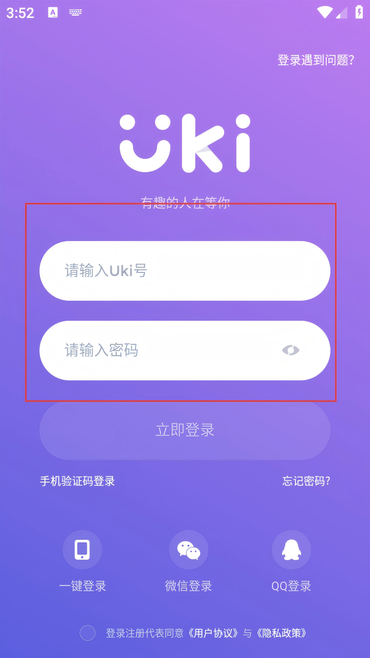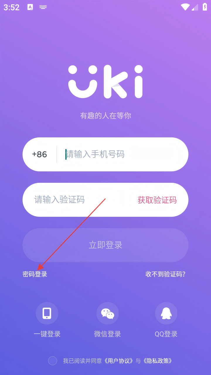 3、在密码登录页面,依次输入Uki号和密码。