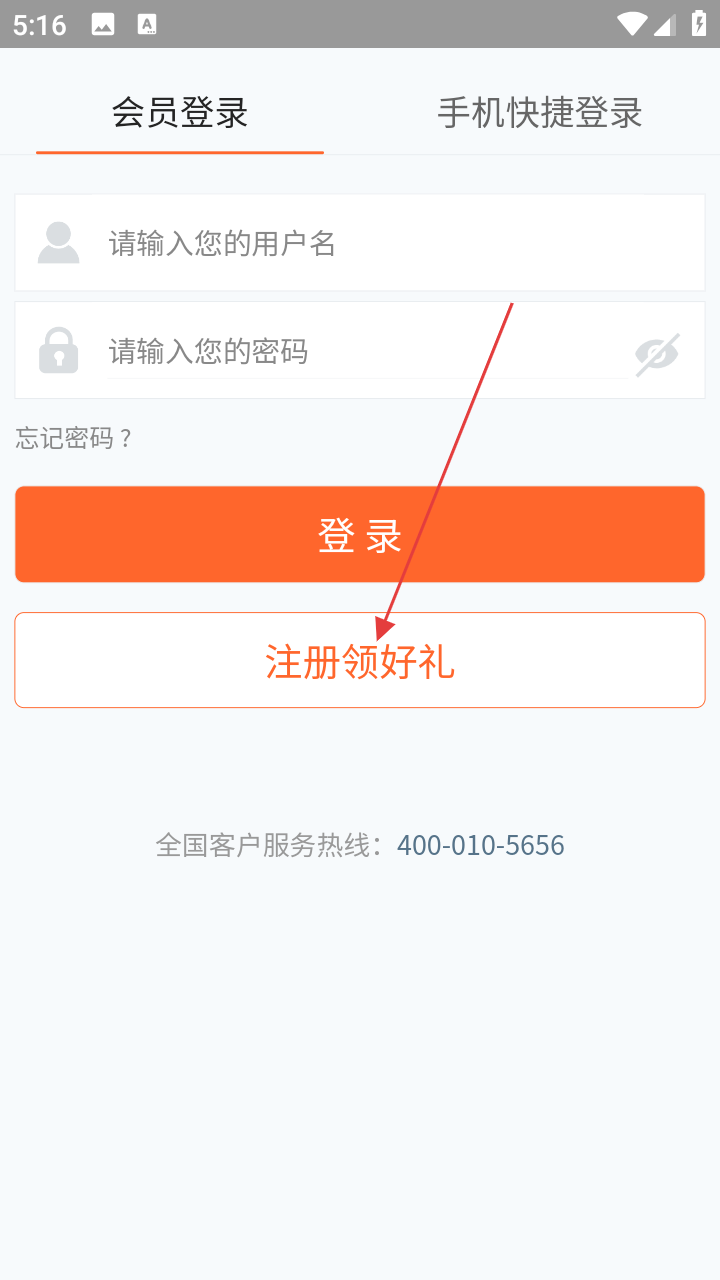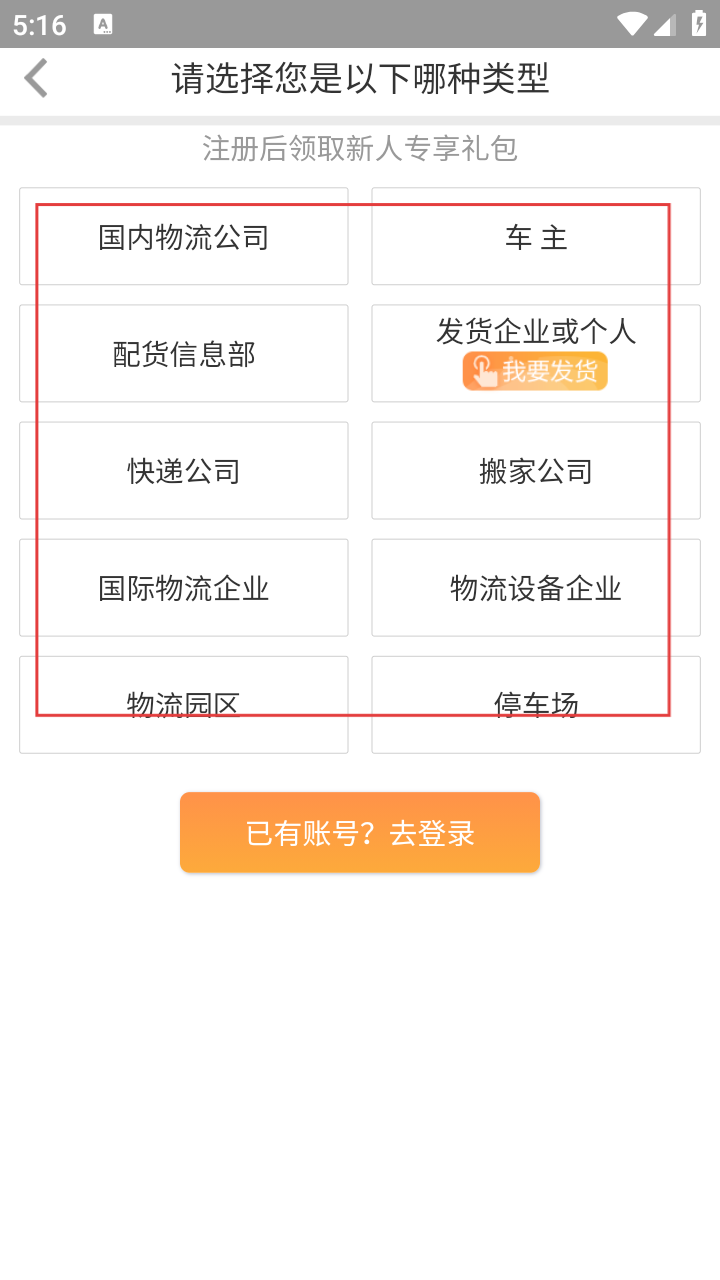 2、在登录注册页,选【注册领好礼】,进入注册类型选择界面。