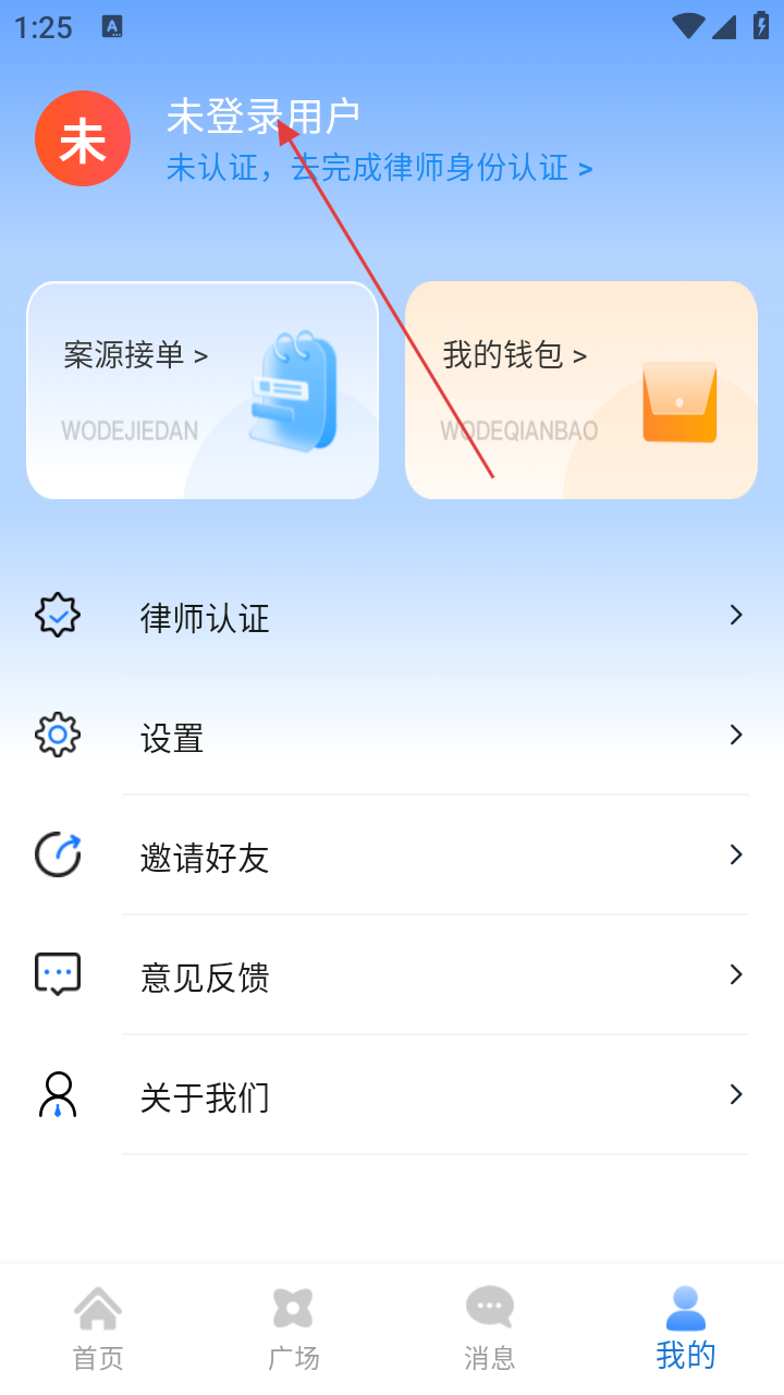 1、打开新讼律师,进入应用首页,点击底部的【我的】。