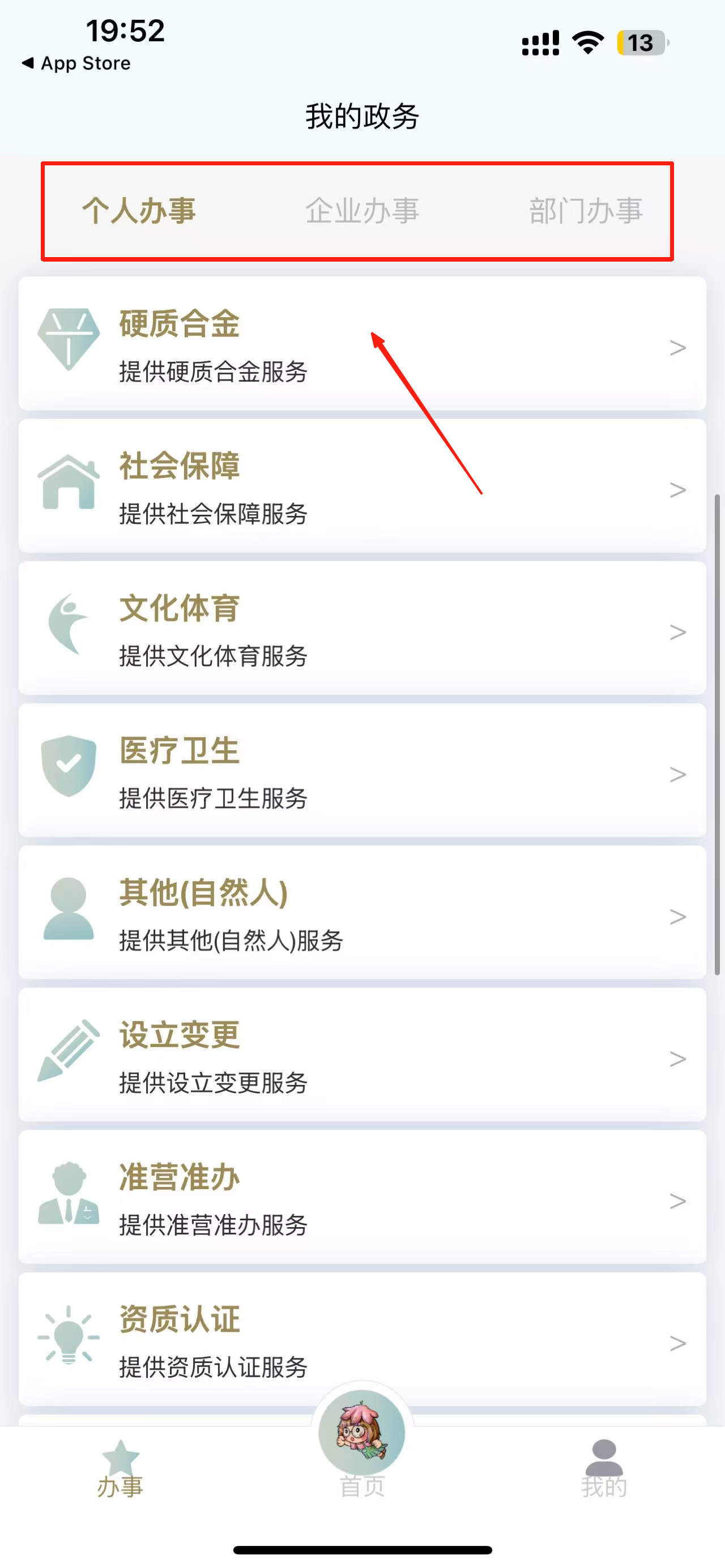 3、选择个人办事:在办事页面,点击“个人办事”选项,查看可办理的个人事务。