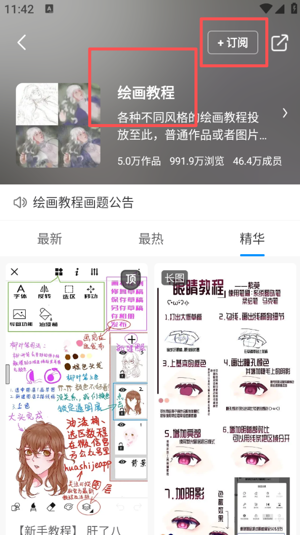 3、点击绘画教程,可以订阅不同风格的绘画教程。