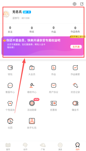 1、首先下载并安装漫想世界,注册后通过设置个人资料以便更好地接收系统推荐的相关创作素材与灵感。