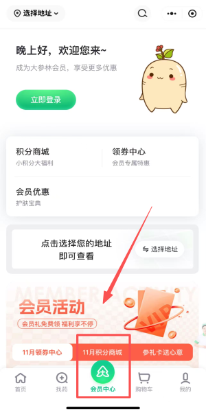 3、点击“立即登录”成为会员,进入积分商城与领券中心享专属优惠。