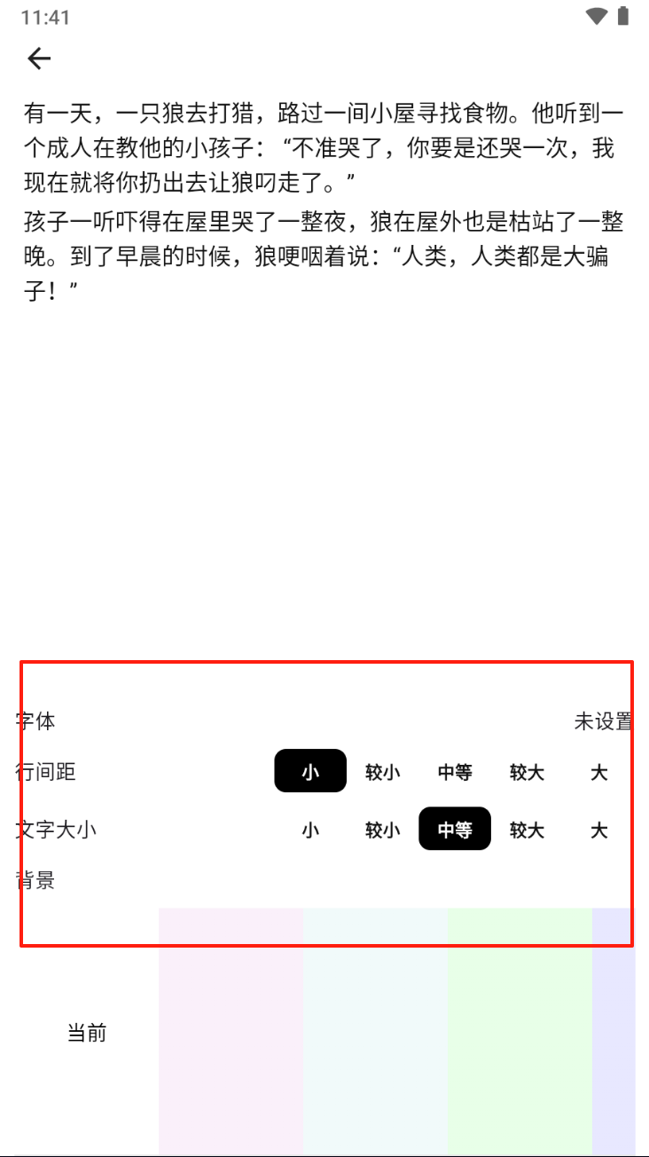 4、调整阅读设置:根据需要调整字体大小、行间距和背景颜色。