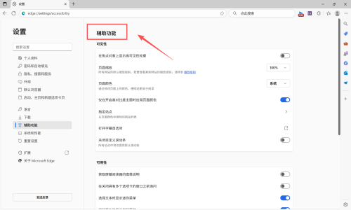 4、进入“辅助功能”勾选键盘导航与页面朗读,夜间护眼模式同步激活。