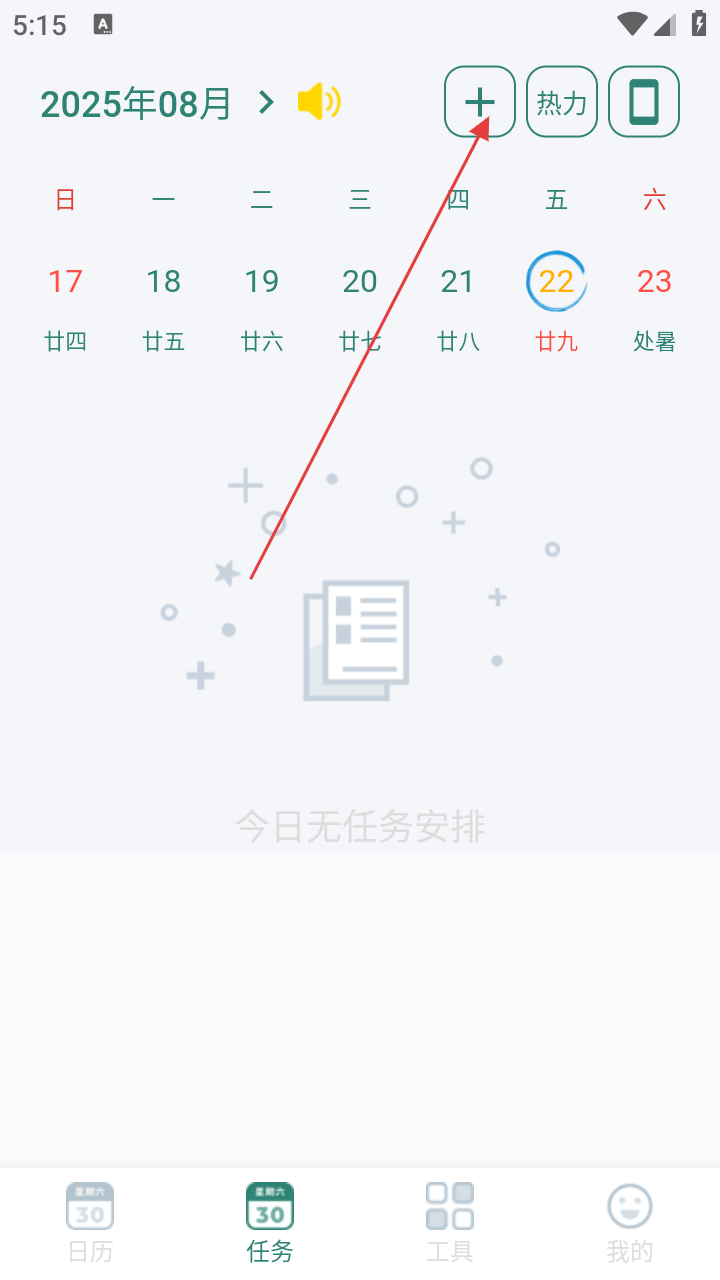 2、在任务页,点击顶部“+”开始添加任务。