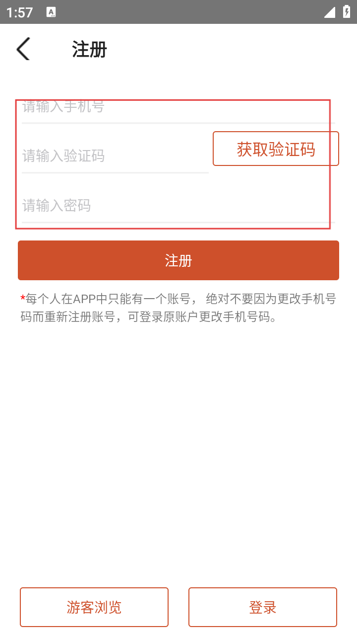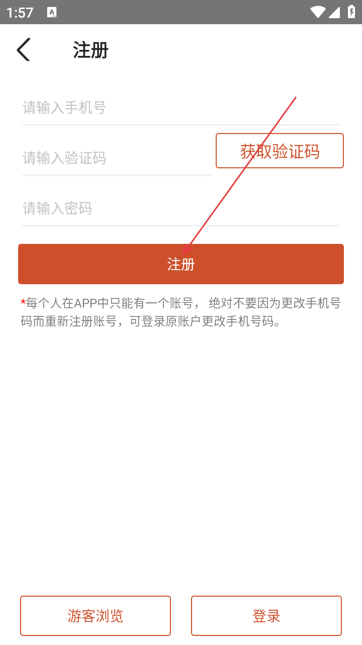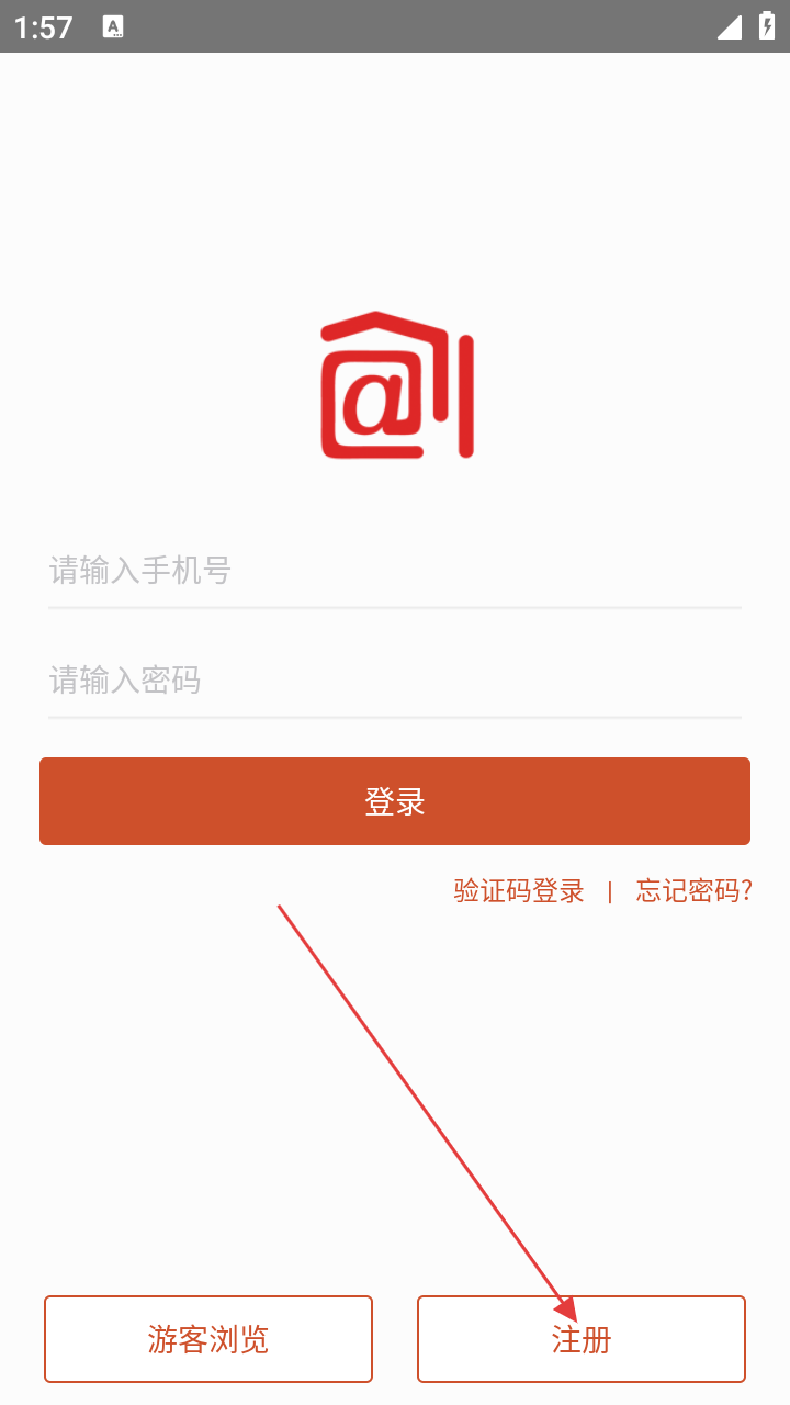 2、在登录页,若无账号,点击【注册】按钮,进入注册流程。