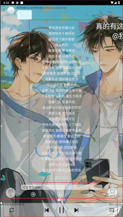 2、点击想听的音乐进入音乐播放界面可以查看歌词等。