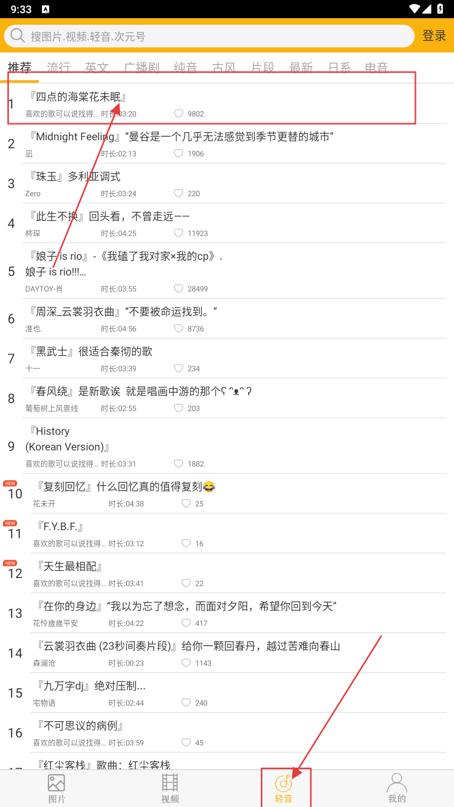 1、打开应用,在轻音页面有很多音乐可以选择。