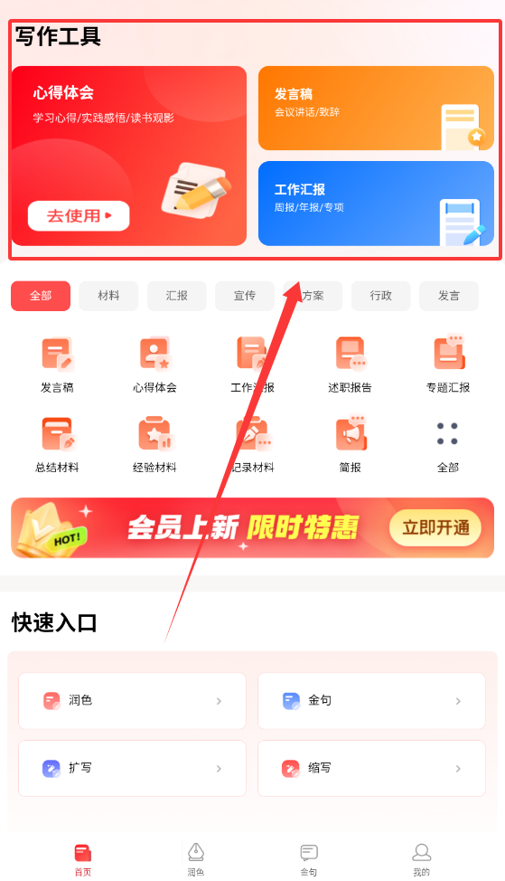 1、首先,在应用商店下载并安装公文宝,注册账户后即可登录,主界面简单直观,方便用户快速找到所需功能,开展高效的公文写作。