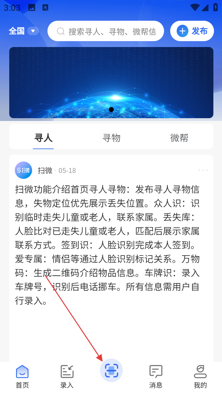 扫微是一款专注于防丢失服务与失物寻回的社会互助平台,致力于通过信息共享与社区力量帮助用户快速寻回走失的亲人与遗失物品,平台支持人员信息预录与车牌联系方式生成功能,同时建立完善的信息审核与异常反馈机制,确保所有寻人寻物信息的真实性与有效性,真正构建安全可靠的社会互助网络。