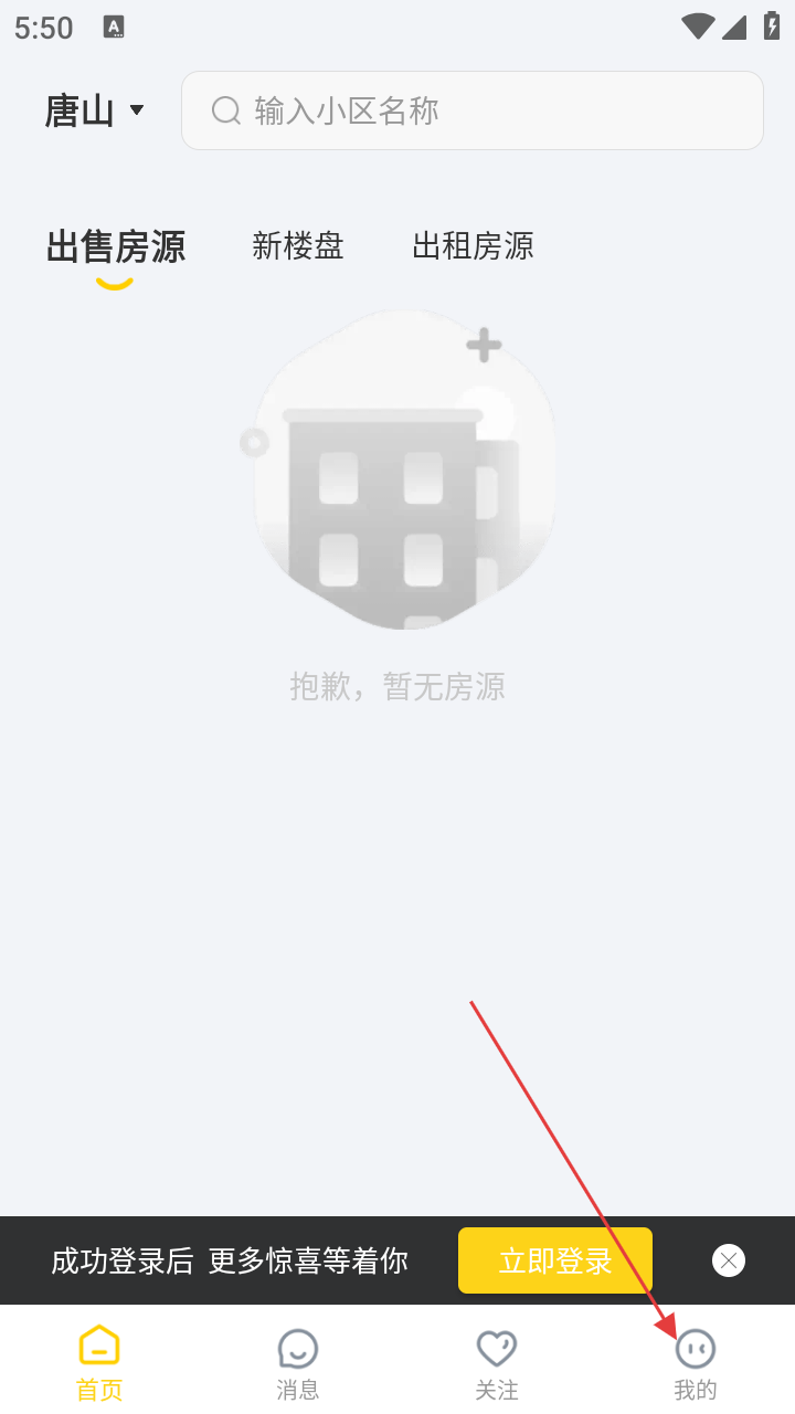 1、打开锡上找房,在首页点击右下角【我的】。