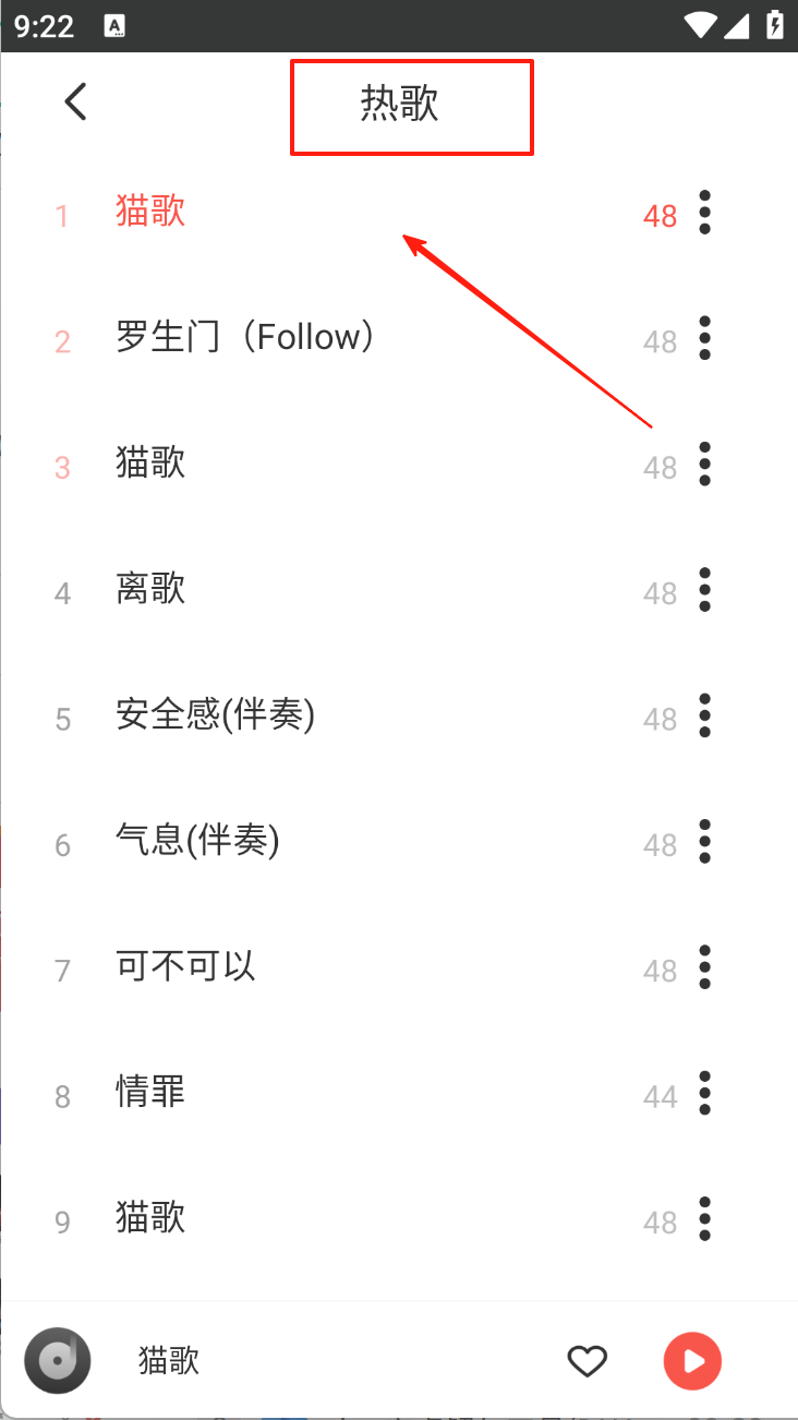 3、点击歌曲名称播放或设置为铃声。在热歌榜中,点击您喜欢的歌曲进行播放或设置。