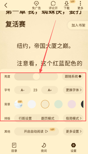4、阅读设置选项允许用户自由调整界面背景和字体样式,打造最符合个人喜好的阅读环境,让您畅享无阻阅读乐趣。