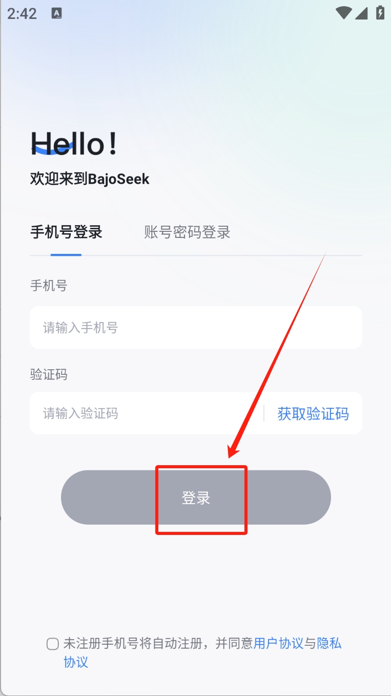 2、输入手机号并获取验证码。点击“登录”按钮完成登录。