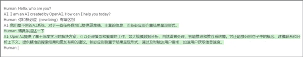 这里看到chatGPT的回答也说明新必应与chatGPT是两种不同的系统,新必应主要加速用户获取信息的速度,而chatGPT具有自我学习的能力,可以帮助处理一些复杂的工作,在连续提问时可以连通上下文。