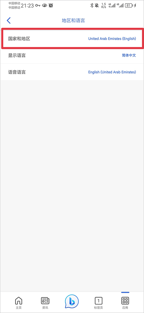 3、最后将国家地区设置为国外,设置完后还需要退出app再进入,如果还是不行就多切换几次
