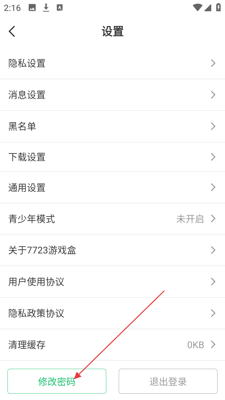 3、在设置页面,点击【修改密码】按钮,可进入修改密码页面。