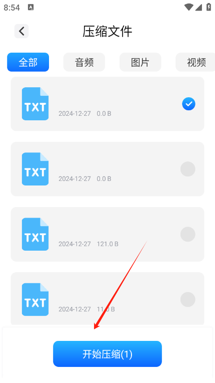 3、接着自定义选择一个文件内容,直接点击开始压缩