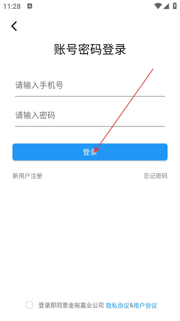 3、在账号密码登录页,依次填入【手机号】和【密码】,准备登录。