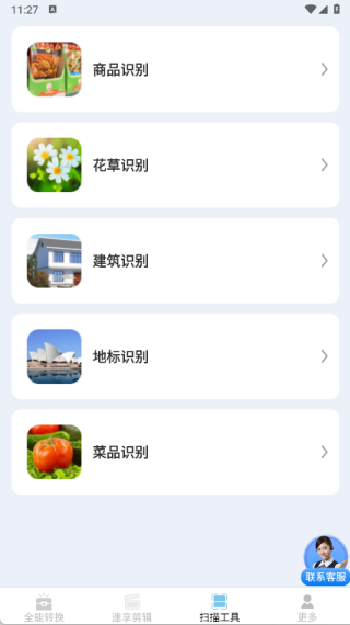 4、在扫描工具页面中可以进行商品识别、花草识别、建筑识别、地标识别和菜品识别的功能。