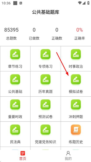 1、在首页点击模拟试卷选项,进入模拟试卷列表页面。