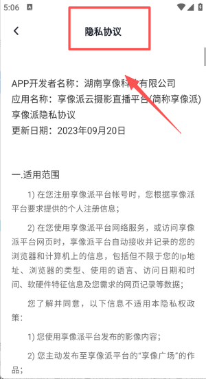 4、阅读隐私协议了解影像内容发布与掌像广场数据条款完成授权。