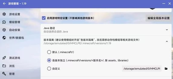 12、开启版本隔离,选择各版本独立,方便后面想玩不同版本MOD不会冲突。