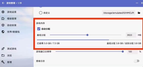 13、游戏内存按手机配置来调,如果前面步骤没问题还是进不去游戏,可以将游戏内存调低一些。