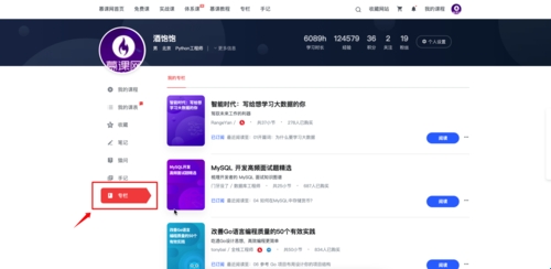 第二步:在我的课程页面左侧,找到「专栏」模块并点击,即可看到已购买的专栏内容。