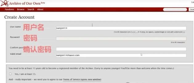 5、如果填写国内邮箱,是收不到AO3的邀请邮件的,建议填写谷歌Gmail邮箱去接收邀请链接。
