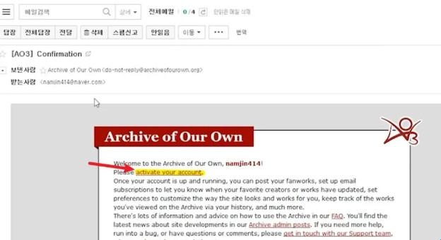 9、接收AO3的官方邮件邀请,激活邀请邮件注册账号,填写注册信息,到邮箱里查收官方邀请信息。