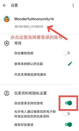 2、如果是有多个谷歌账号不会切换,还是先打开梯子连接,然后打开Play游戏,点击右上角三个点--设置,点击头像处切换账号,别忘了依旧要把自动登录支持的游戏打开,然后再打开游戏,登录界面点击google登录就可以了。