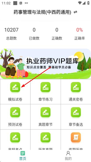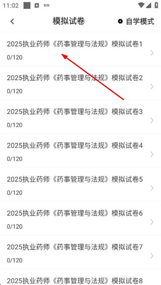 1、在题库首页点击模拟试卷选项,进入模拟试卷列表页面。