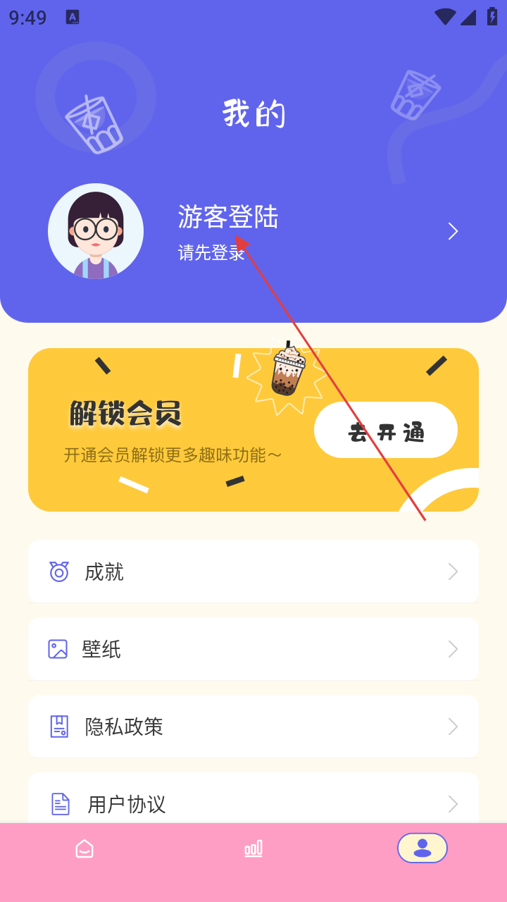 3、在个人中心,点击【游客登陆】,进入登录界面。