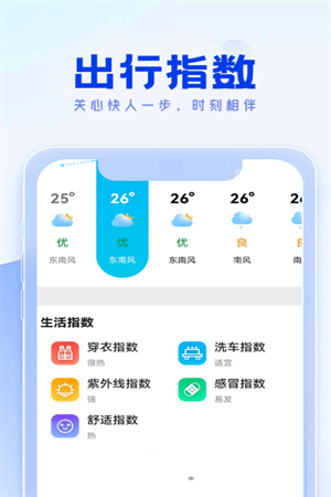 1.用户可以查询当地的生活指数,了解当地的交通状况、穿衣指南、旅游指数等信息。
