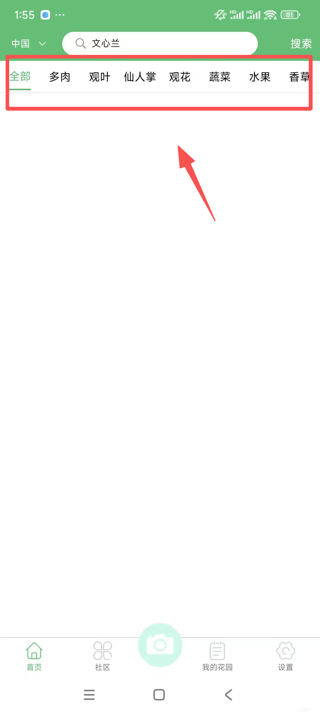 4、在搜索页面,选择分类或直接搜索植物名称以查找特定植物。