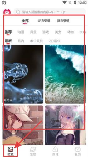 1、打开应用,在【壁纸】界面有很多壁纸可以选择。