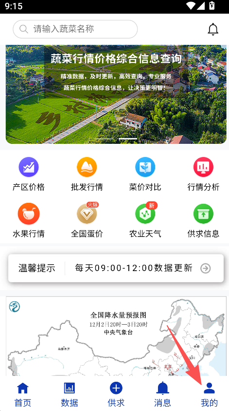 《蔬菜行情专家》作为一款专注于蔬菜行情查询的软件,设有首页、数据、供求、消息、我的等多个板块。首页整合了产区价格、批发行情、菜价对比等实用功能,同时还包含水果行情、全国蛋价等拓展模块,并明确提示每日09:00-12:00进行数据更新。在“我的”页面中,用户可以找到订单中心、关注订阅等功能入口,菜价助手板块则展示着用户协议。该软件全面覆盖蔬菜及相关品类的行情查询需求,能够适配各类农业相关场景,有效提升了行情信息获取的便捷程度,精准满足农业从业者对行情数据的核心需求,助力其及时掌握农业行情动态。