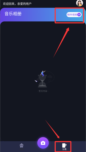 4、选择底部的分类进入点击右上角的按钮点击制作视频。