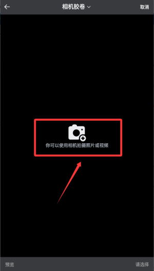 3、点击中间的按钮选择添加图片视频或者直接拍摄。