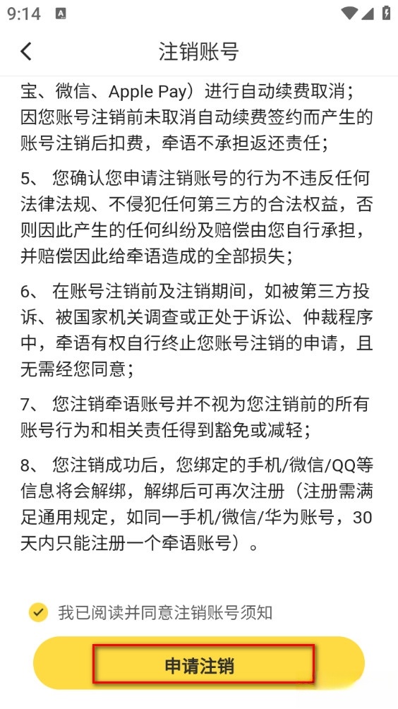 牵语免费版怎么注销