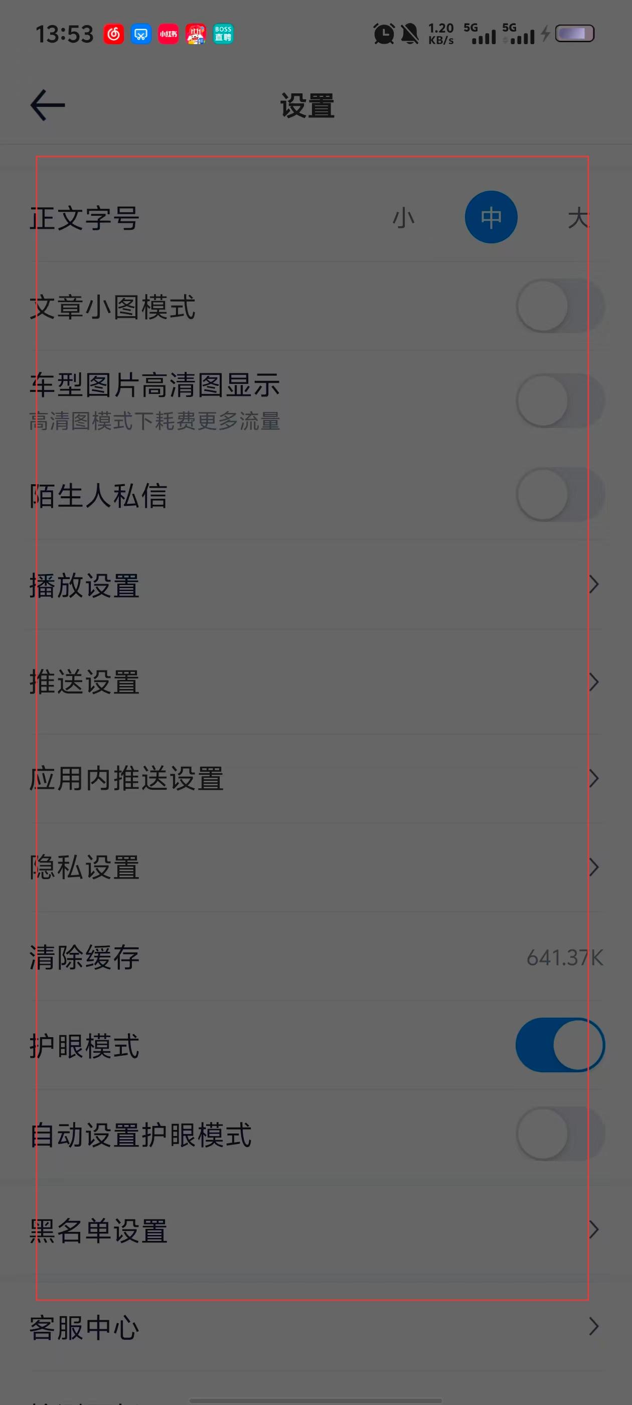 3、在设置界面,可开启【护眼模式】,还能调整正文字号、设置推送等,优化使用体验。