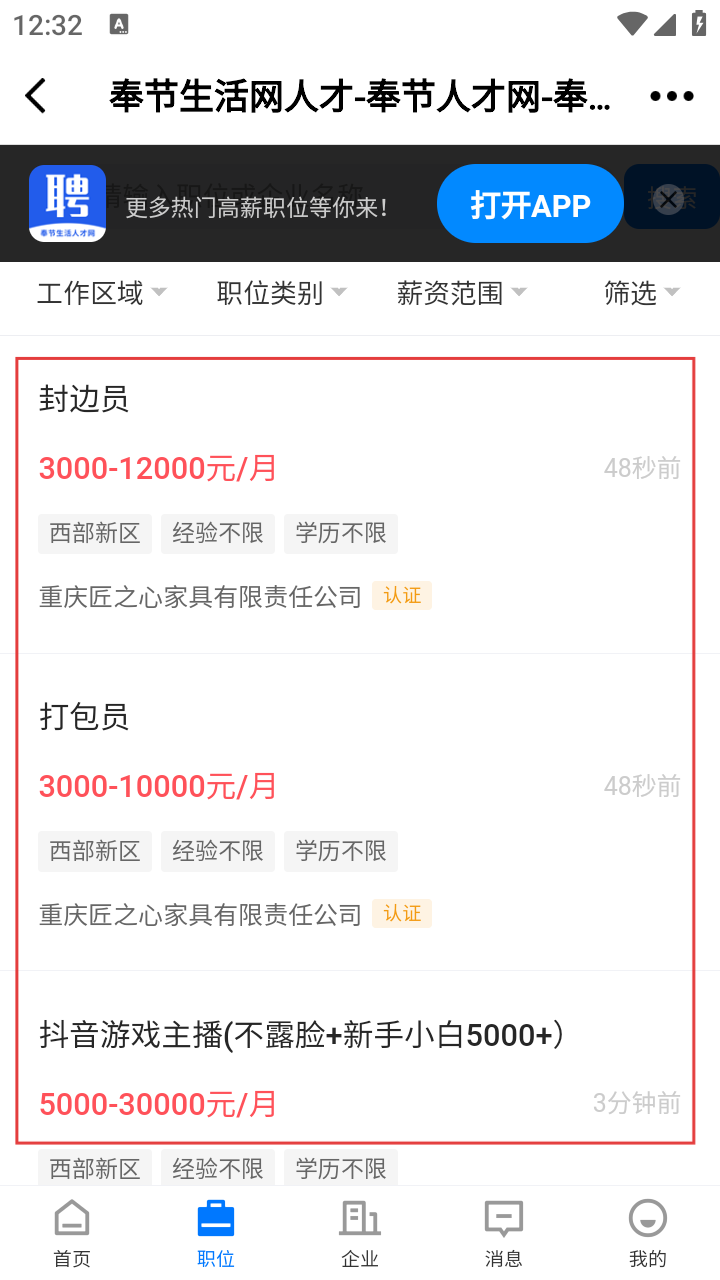 3、职位列表里,筛选查看各种岗位,选择心仪的岗位,点击查看详情了解待遇。
