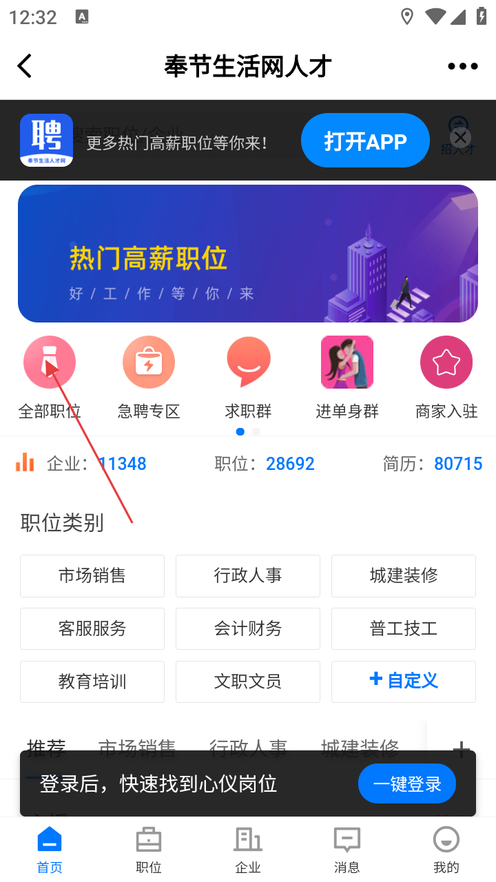 2、在人才板块,选【全部职位】,浏览各类岗位信息。