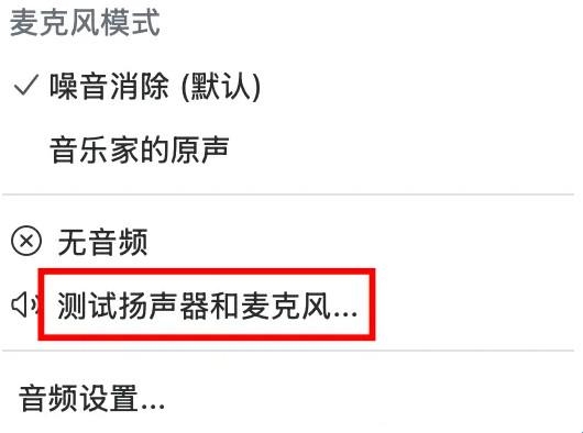 8、在进入面试会议室前,可以在音频设置中分别点击【测试扬声器和麦克风】按钮,检查自己的硬件设备。