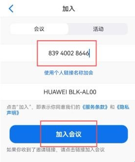 5、输入会议号,点击“加入会议”。