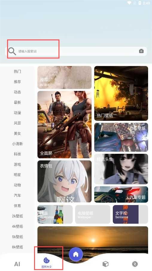 2、在搜索栏中输入关键词,快速找到你需要的图片或功能。