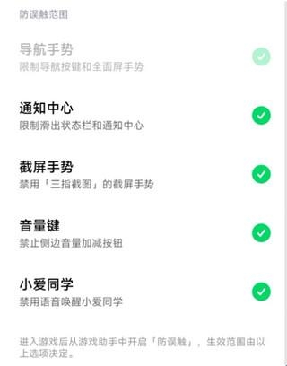 解答:对于防误触范围,默认限制导航手势,可将【通知中心、截屏手势】等其它选项也按需勾选,进入游戏后就会根据该范围展开限制。
